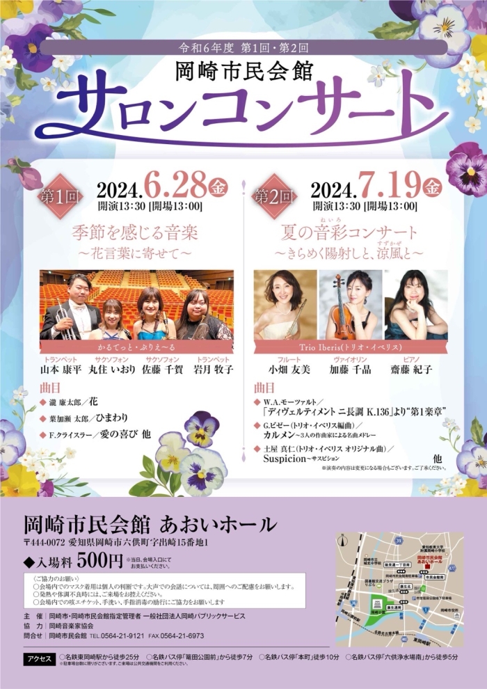 ⚫︎2022年 11月「トリオ イベリス」を結成し、岡崎市民会館サロンコンサート出演 ⚫︎2023年 1月文化芸術祭「階段コンサート」(岡崎市図書館交流プラザりぶら) 6月ミッドランドスクエア名古屋アトリウムコンサート 10月知立リリオワンコインコンサート 11月パティオ池鯉鮒ふれあいコンサート ⚫︎2024年 5月扶桑文化会館ふそうのロビコン 6月ミッドランドスクエア名古屋アトリウムコンサート出演予定 7月岡崎市民会館サロンコンサート出演予定 11月宗次ホールランチタイム名曲コンサート出演予定 |